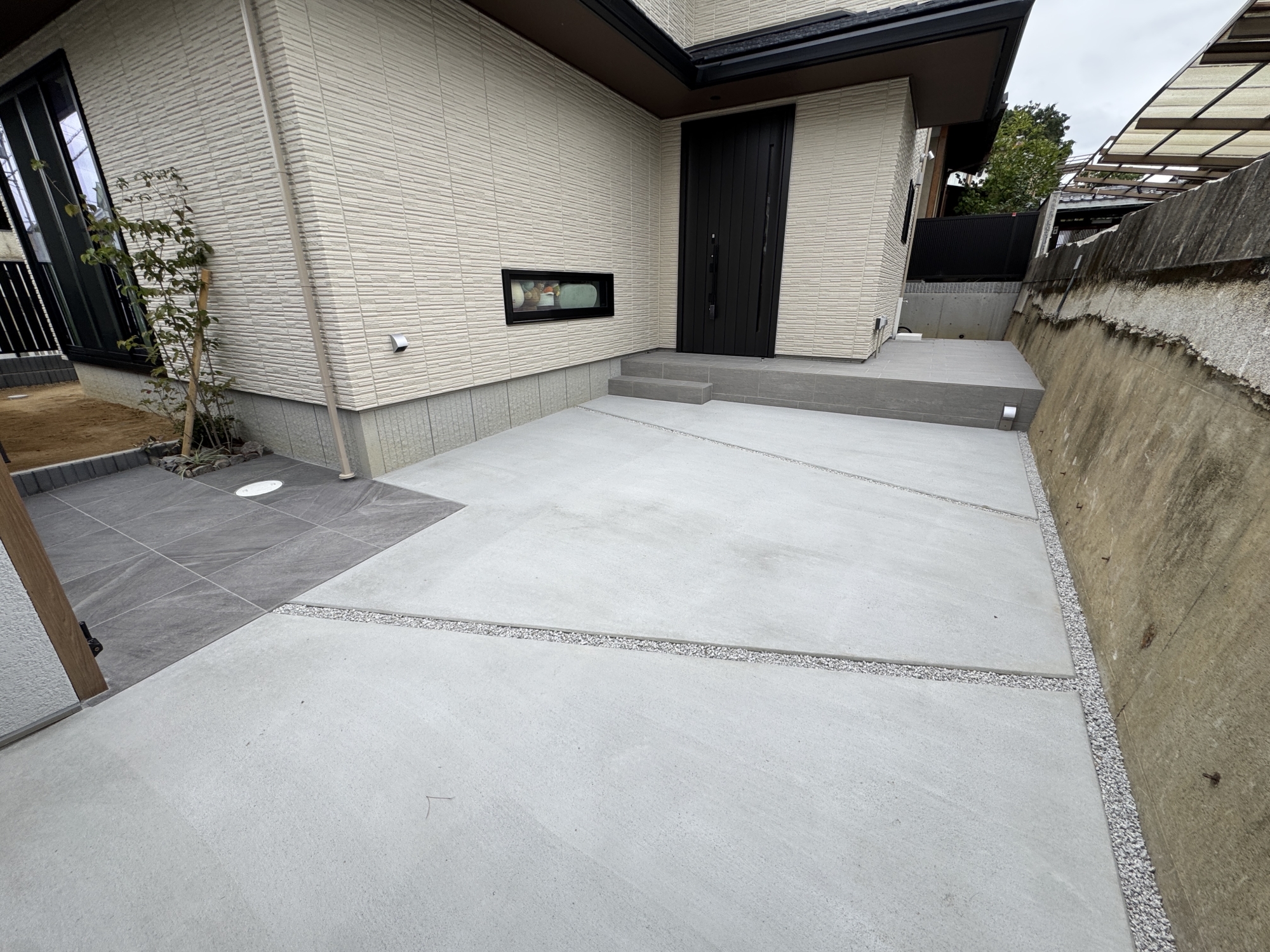 HOME 事務所・倉庫紹介 京都市 Y 様邸 新築外構工事(完工前・完工後) 完工前 完工後 ・完工写真・タイル門柱・駐車スペース:土間コンクリート刷毛引き仕上げ・アプローチ(タイル貼り) 完工写真 タイル門柱 駐車スペース:土間コンクリート刷毛引き アプローチ(タイル貼り) ・三和シャッタゲート・シンボルツリー(ハナミズキ、シラカシ) 三和シャッターゲート シンボルツリー:ハナミズキ シンボルツリー:シラカシ