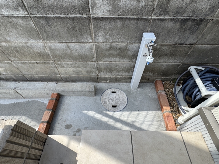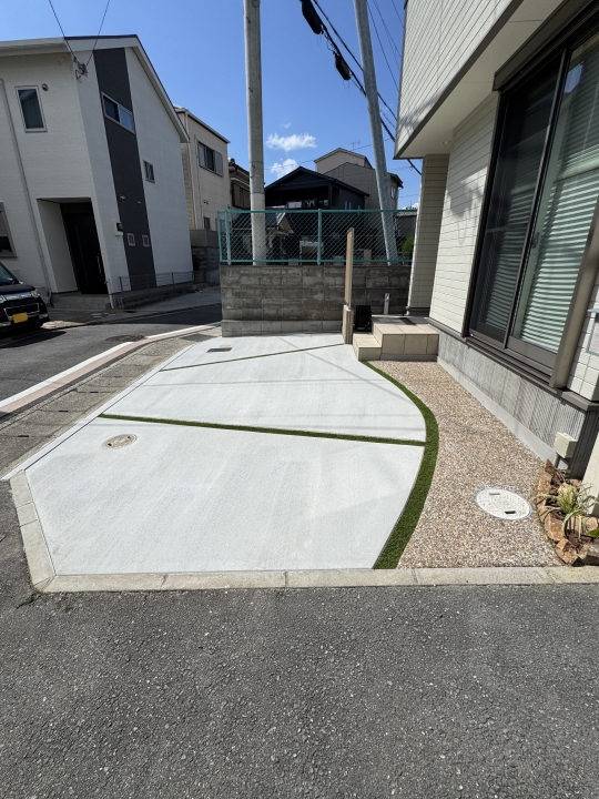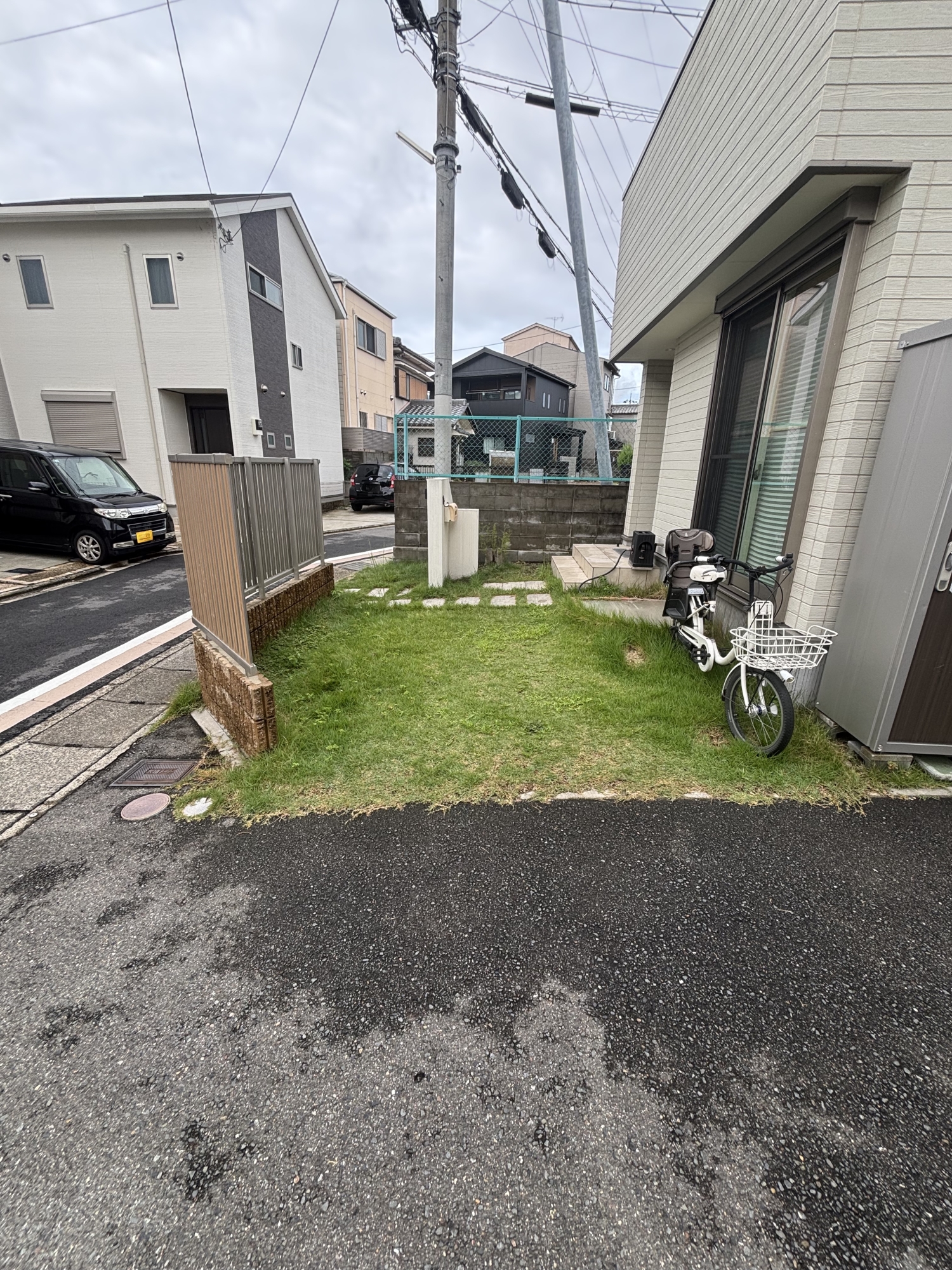 HOME スタッフ紹介 京都市 Y 様邸 リフォーム外構工事(完工前・完工後) 土間コンクリート刷毛引きコンクリート割れどめ:スリット(人工芝)山ビリ砂利洗い出し仕上げ リフォーム完工前 リフォーム完工後 完工前 完工後 駐輪スペース(土間コンクリート刷毛引き)LIXIL:サイクルポート 駐輪スペース完工前 駐輪スペース完工後 機能門柱 立水栓