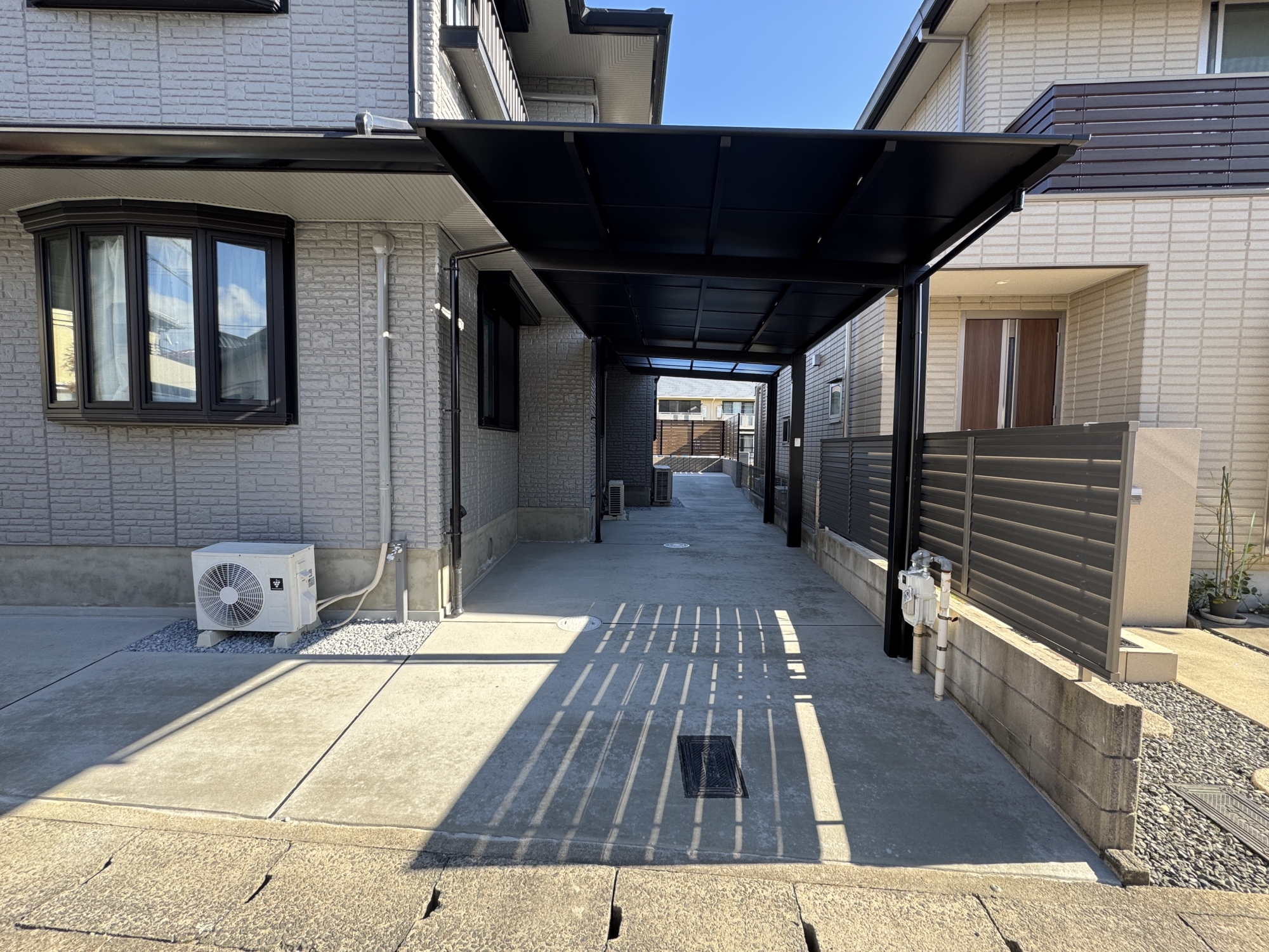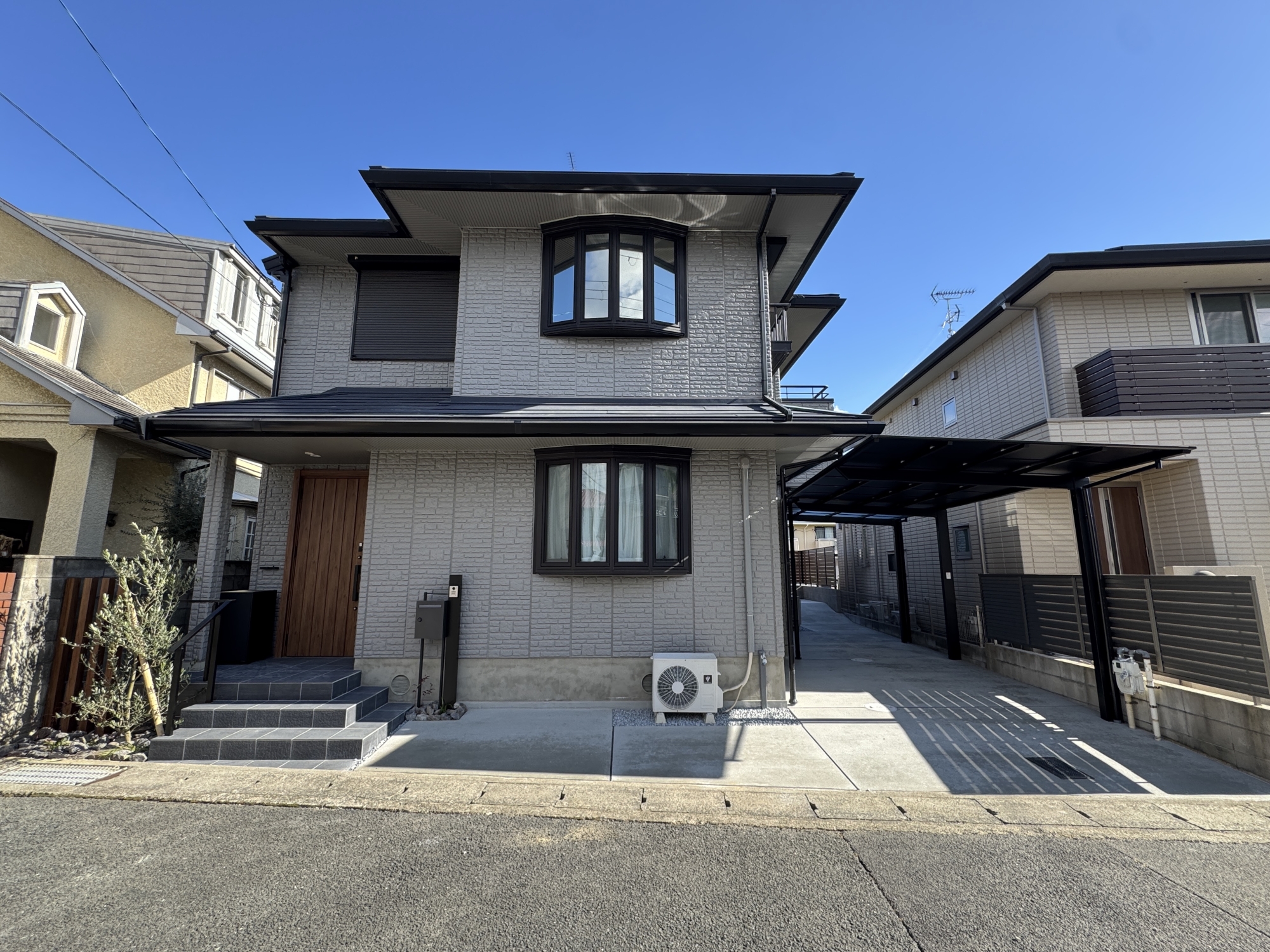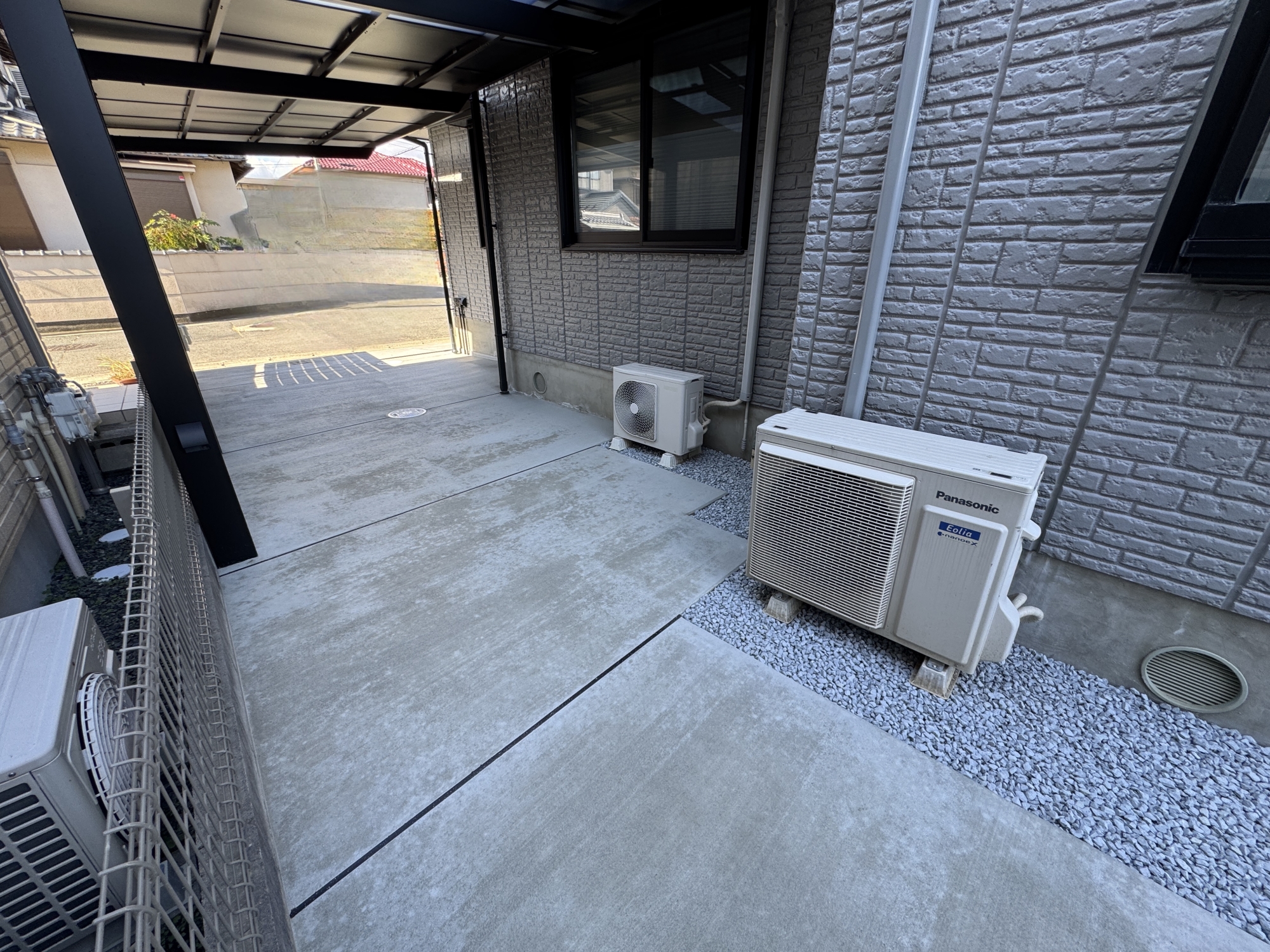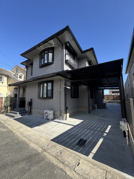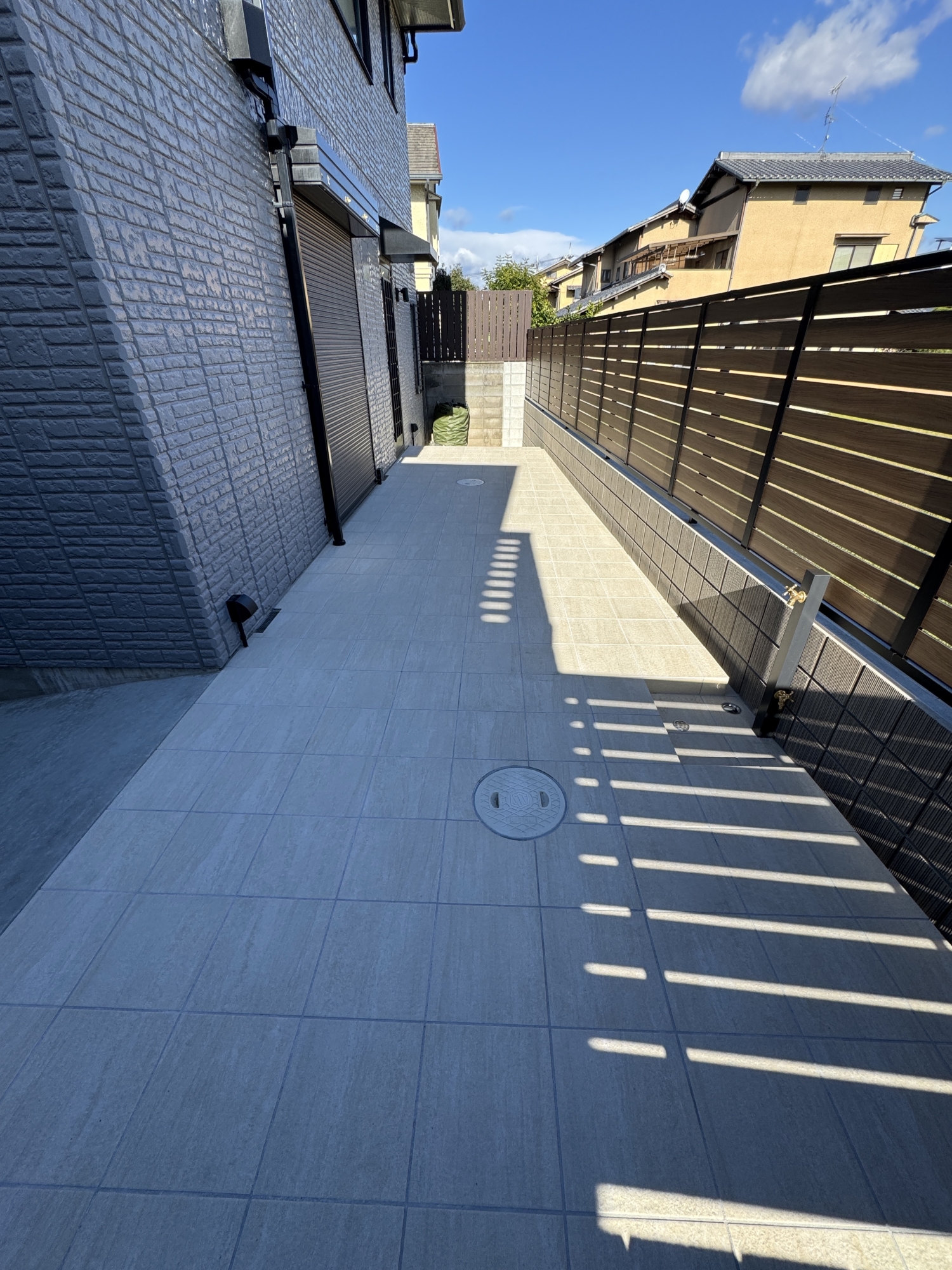 HOME エクステリア施工事例 西京区Y様邸 リフォーム外構工事 リフォーム完工前 リフォーム完工後 建物廻り完工前 建物廻り完工後(タイルテラス) ・完工写真・アプローチ(タイル階段)・シンボルツリー(オリーブ) 完工写真 アプローチ(タイル階段) シンボルツリー(オリーブ) ・駐車スペース(土間コンクリート刷毛引き)・LIXILカーポート(ネスカF) 駐車スペース(土間コンクリート刷毛引き) LIXILカーポート(ネスカF) 土間コンクリート刷毛引き タイルテラス タイルテラス